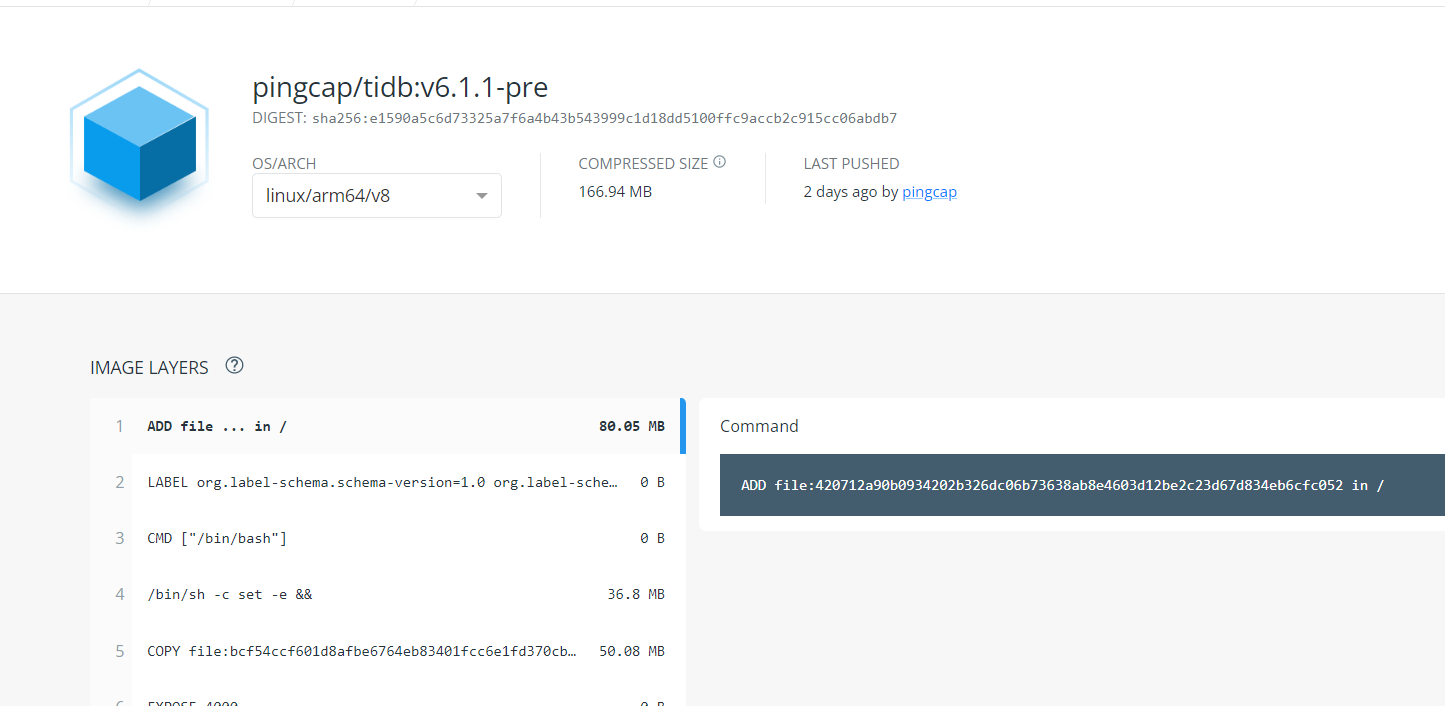 如果是自己进行编译,可以直接从 Github 的 TiDB repo 下载,自己打包一个 arm binary 然后 build 生成 docker images。