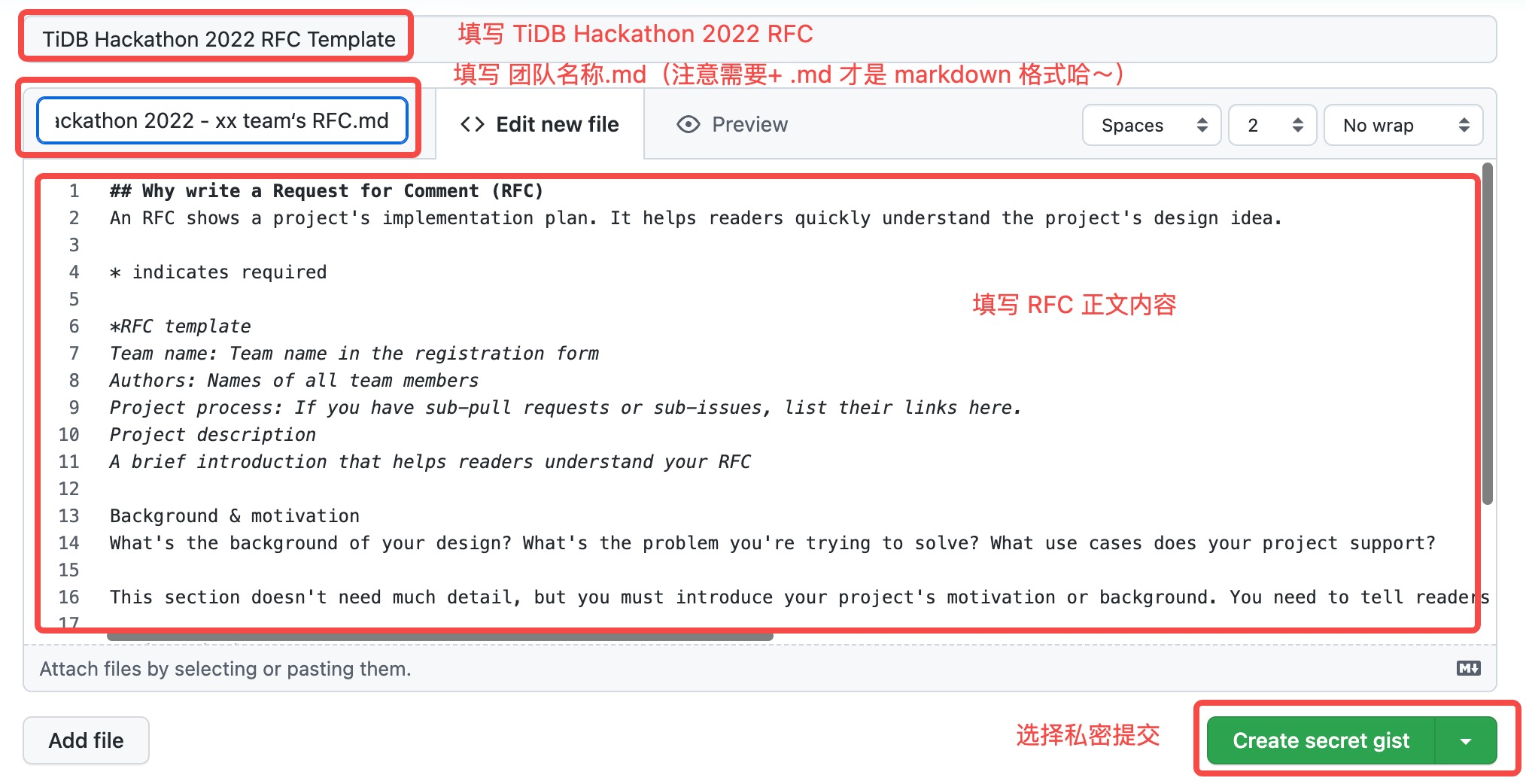 gist 格式模板:TiDB Hackathon 2022 RFC Template · GitHub