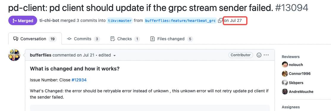 综上,应该是踩到这个 bug 了–> Master: two tikv don't report region heartbeat after inject fault to pd leader · Issue #12934 · tikv/tikv · GitHub (此 BUG 影响 5.3 以上版本集群行为),这个 BUG 重启后会出现 Region Heartbeat Pending ,与本问题现象吻合,刚好是恢复的时间点。