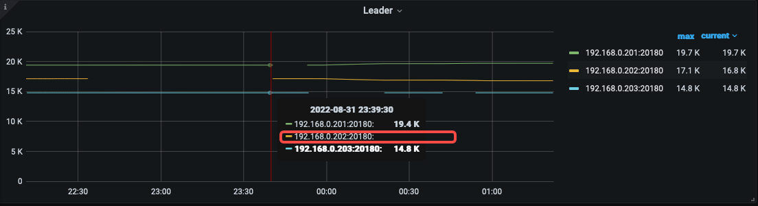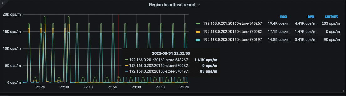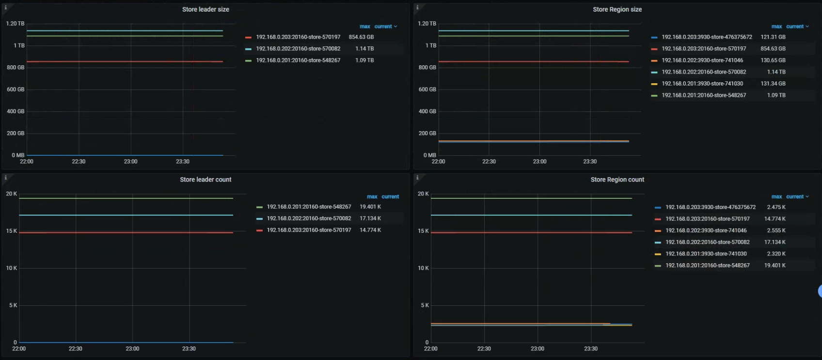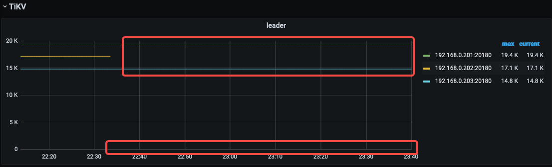 首先,再 22:33:00 左右断网,而其他 store 的 leader 却没有增长,是引发 Region is unavailable 的问题点;