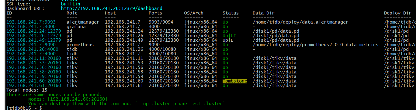 1、确认当前异常的 TiKV 节点的状态,如果是 down 可以先缩容,缩容后变为 offlline 状态,当变为 tombstone 表示缩容成功: