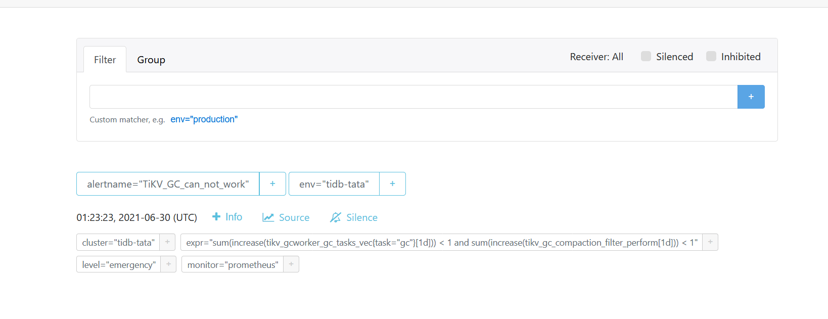 一个完全新的集群,好像因为 tikv_gc_compaction_filter_perform 不存在,这个报警不会触发