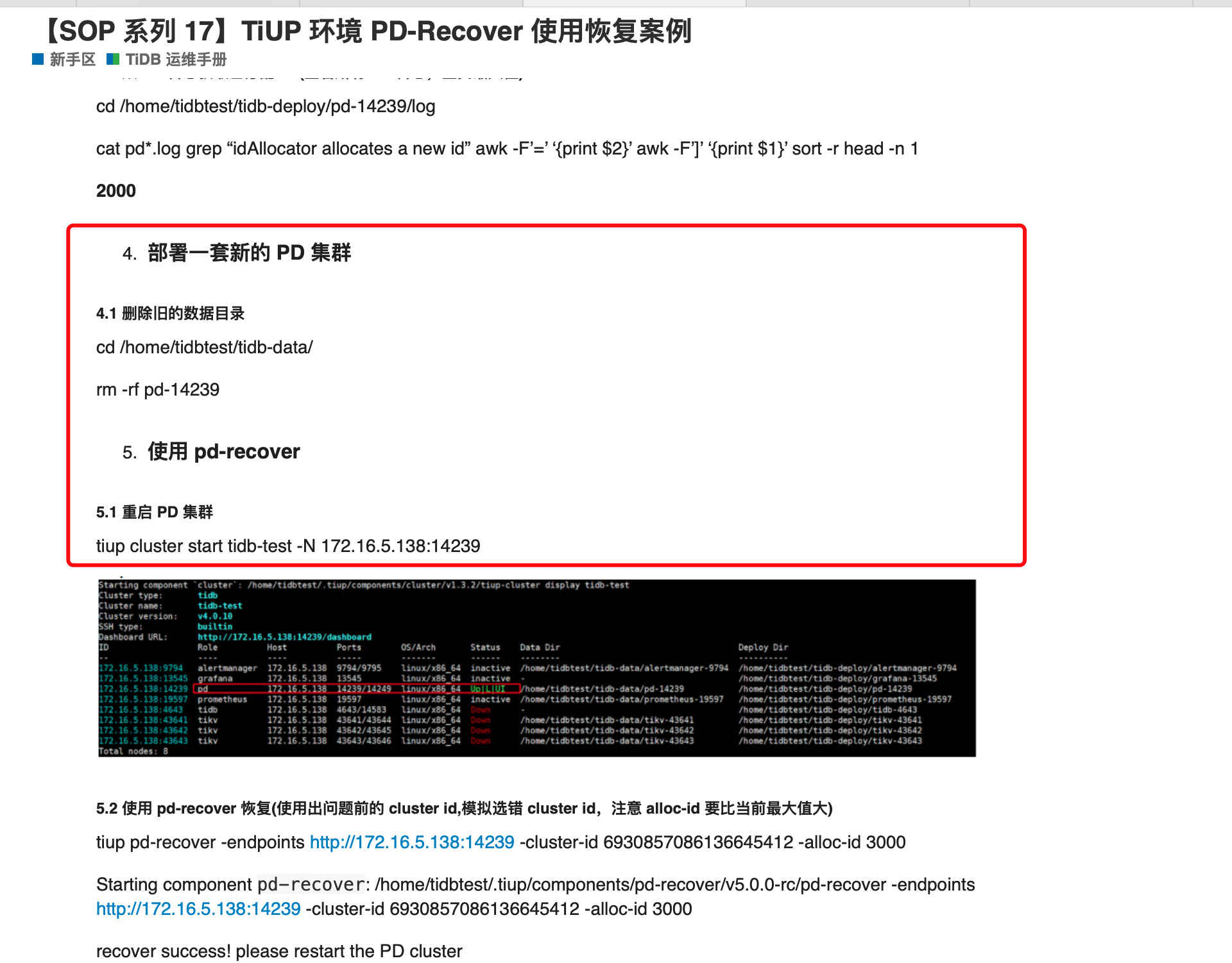 ./pd-recover -endpoints http://10.10.23.54:2379 -cluster-id 6964583659800111049 -alloc-id 10000