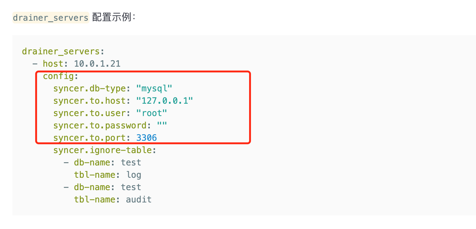 2、drainer 的部分配置如下: