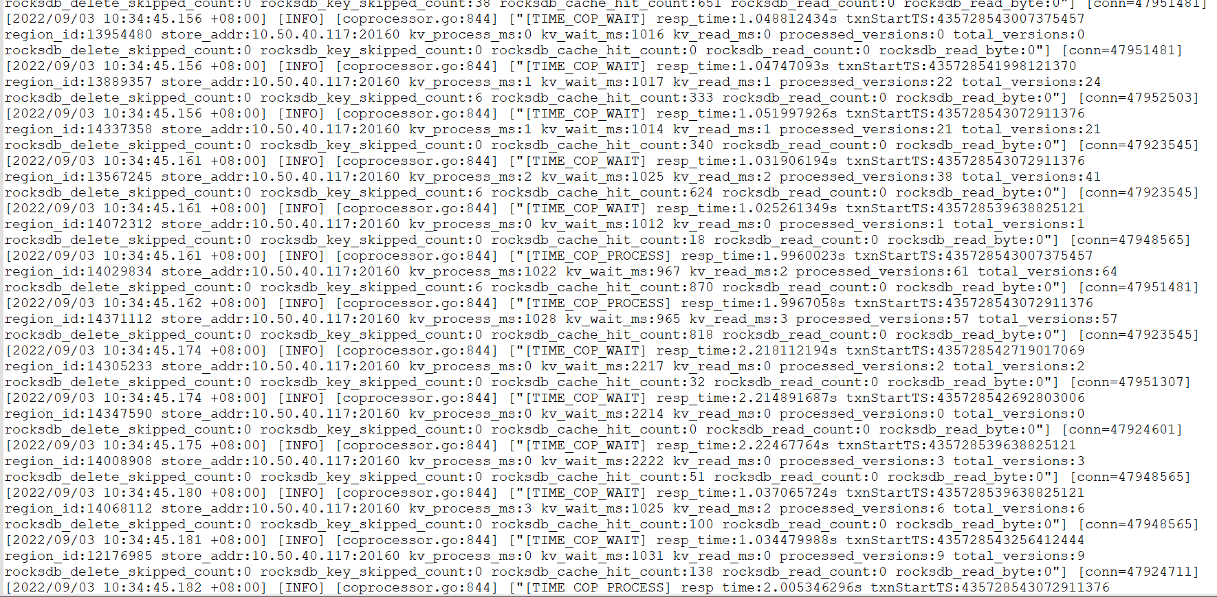 [2022/09/03 10:34:17.935 +08:00] [ERROR] [distsql.go:1222] [“table reader fetch next chunk failed”] [conn=47924601] [error=“context canceled”]