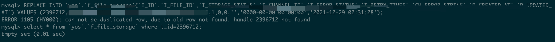 结果数据不一致,执行replace语句后写入失败。