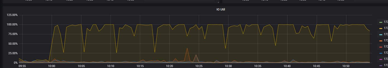 加了一台KV,现在4台。ioutil就下去了,不像平时那样时不时100%