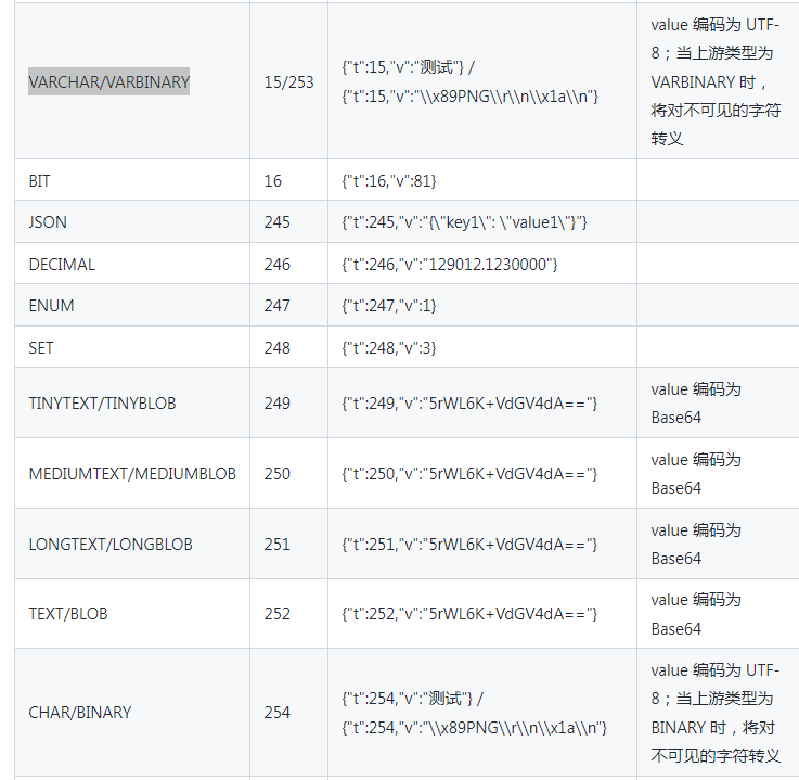 1、在以上页面中未说明 CDC 下游为 表字段 CHAR/BINARY、VARCHAR/VARBINARY类型的会被转换,可能会被认为数据复制到下游后变成乱码了,其实不是。在