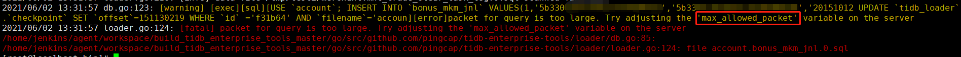 https://docs.pingcap.com/zh/tidb/v3.0/loader-overview#全量导入过程中遇到报错-packet-for-query-is-too-large-try-adjusting-the-max_allowed_packet-variable
