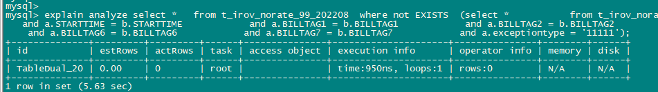 这个应该是因为 not exists 子查询是个非关联的简单子查询,目前 TiDB 会展开计算,然后 not exists 的计算结果是 false,所以变成 dual 空表了