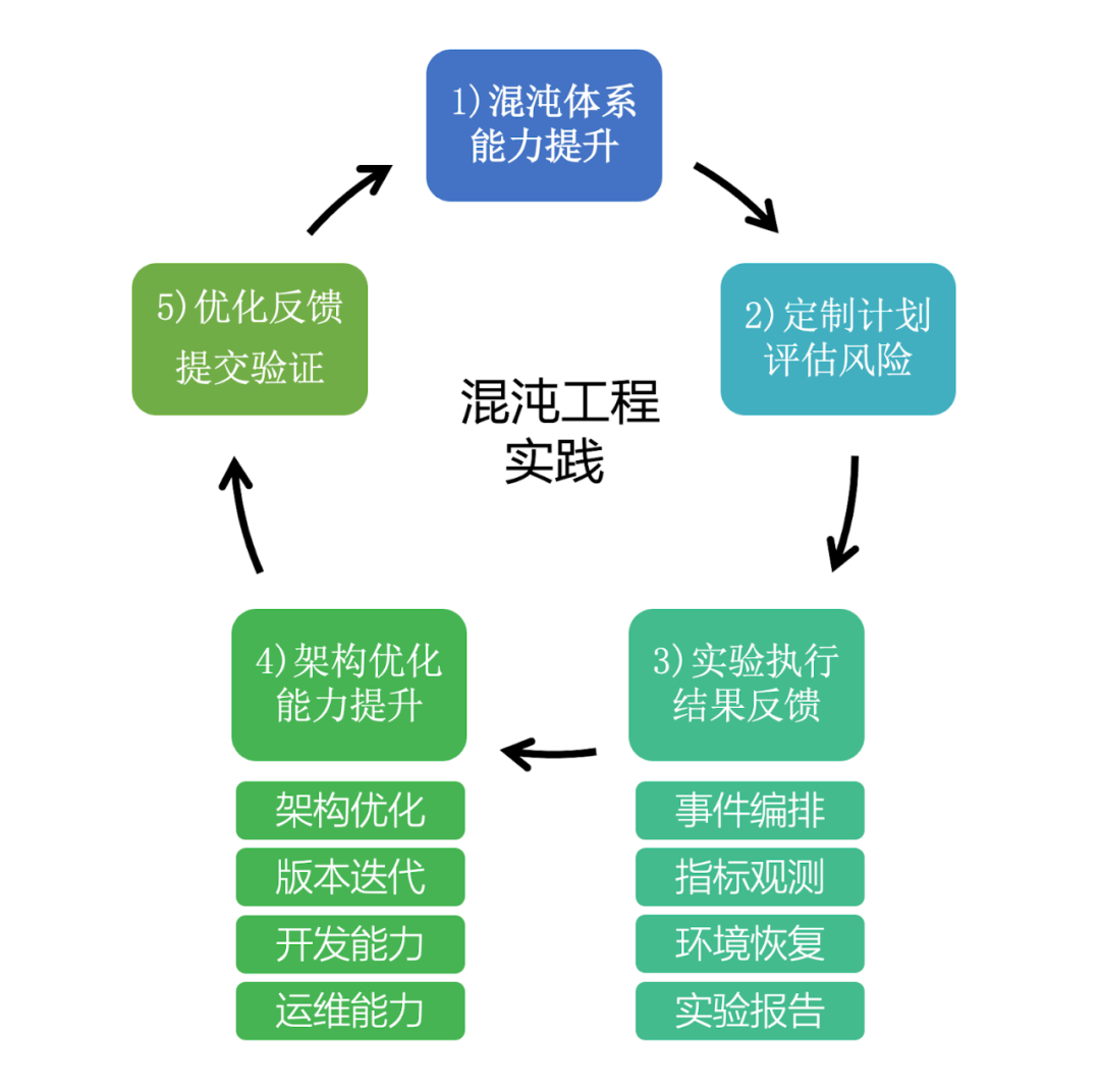 业界对混沌工程实践落地上,有一套较为完善的理论体系,吴召军 总结了五个环节 。首先是要有个 方便好用的做实验的平台 ,这个平台能够去编排,下发实验、执行实验。然后就是在平台做实验计划需要能 有效控制风险 ,实验执行过程中需要能实时观测到实验稳态指标,实验发现了问题需要有跟进优化,问题已经解决之后要及时提交验证和处理。形成一个完整的迭代闭环。腾讯互娱混沌工程团队也是基于这个理论来实施建设混沌实验平台。