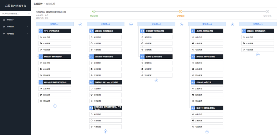 这里就举一个在腾讯互娱团队内部的平台执行实验的例子,这里是实验编排环节,这里的编排同时支持并行的和串行的,可以在一次实验里把所有需要执行的故障全部都编排好,多个服务并行去执行混沌实验。