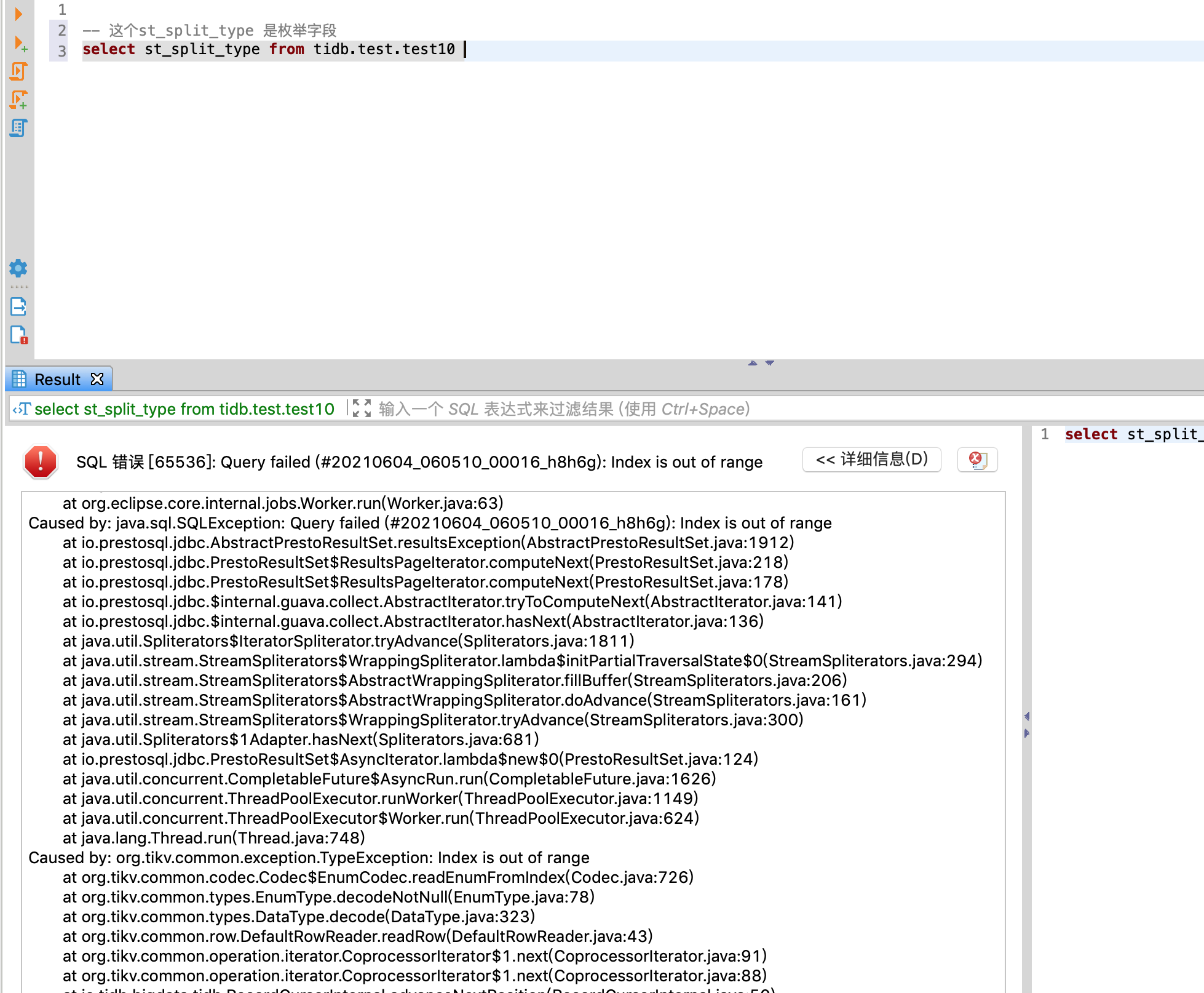 刚刚那个问题出现的原因在于presto貌似不支持split对象里放非简单类型的对象