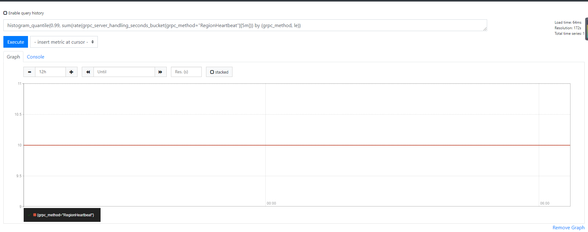histogram_quantile(0.99, sum(rate(grpc_server_handling_seconds_bucket{grpc_method="RegionHearbeat"}[5m])) by (grpc_method, le))