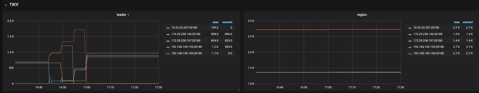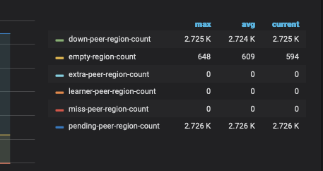 (目前只剩下scale-in 之后的监控大盘数据了。之前未观察被删除的tikv 的region count 是否在下降,不知道是因为副本调度太慢还是什么原因导致的tikv 一直处于offline 状态)