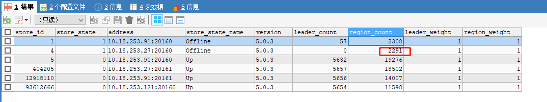 {"id":1,"address":"172.29.238.197:20160","state_name":"Up","labels":[{"key":"host","value":"tikv1-1"},{"key":"dc","value":"bjtx"},{"key":"zone","value":"z1"}]}