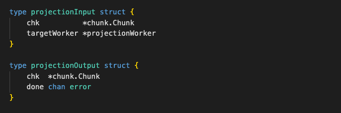 每个 worker (*projectionWorker) 都有自己的 Channel (inputCh) 属性,在 recoveryProjection 中被用于接收来自 Chunk 的数据交给 targetWorker 处理,targetWorker 在 prepare “下面代码阶段” 被分配,一旦 mysql client session 连接成功该变量值就被初始化完毕,这也该系统变量是 session 级变量的原因吧!!!