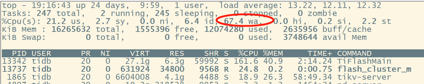 另外,tiflashmain进程不断重启后,服务器磁盘IO异常高,如下图