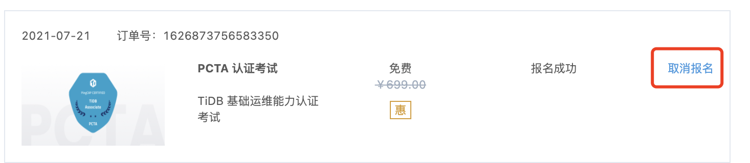 - 顺利通过考试后即可获得 TiDB 系统管理基础能力认证( PCTA 认证证书 )。
