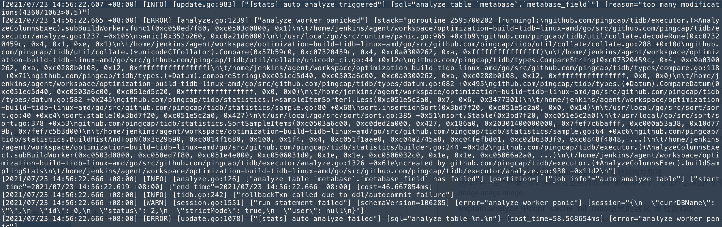 analyze table 提示analyze worker panic, Time: 1.263000s