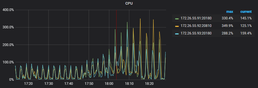 从监控上看不到明显的热点情况,但是从 TiKV 的监控可以看到部分节点负载明显高于其他节点。这是因为目前 PD 统计热点 Region 的维度比较单一,仅针对流量进行分析,在某些场景下无法准确定位热点。