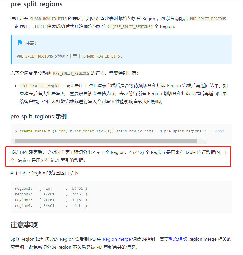 我已经可以用shard_row_id_bits切分region啦,那我这样还要执行pre_split_regions切分region,shard_row_id_bits和pre_split_region都是切分region?总是感觉和前面的概念混乱?可以帮忙解释下吗?