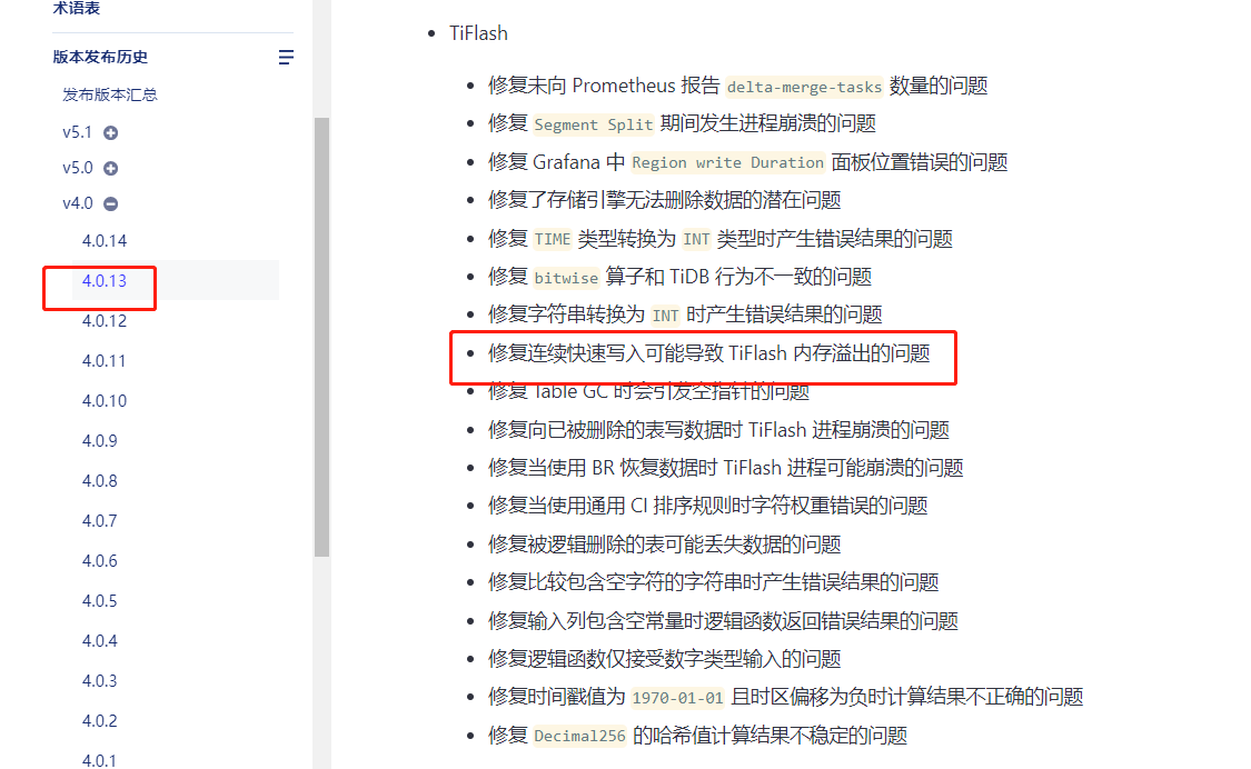 现在能辨别出来问题原因吗,以及后续如何避免,tiflash oom我们已经遇到这是第四次了,前三次都是在4.0.11版本,直接机器都连不上了,后来看到4.0.13有修复,就升级了,现在又出现了这个问题,生产出现了4次同样的问题,有点头疼。。