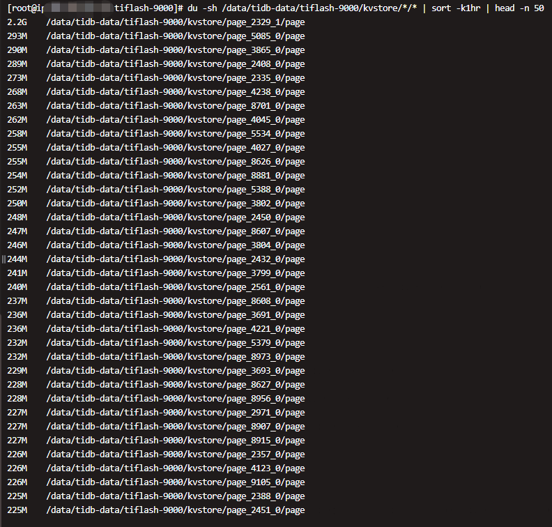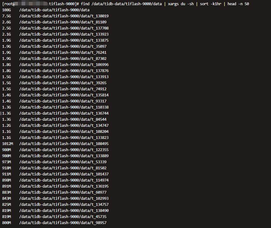 du -sh <tiflash_data_dir>/data/*/* | sort -k1hr | head -n 50
