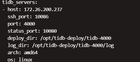 Error: init config failed: 172.26.200.237:2379: transfer from /home/tidb/.tiup/storage/cluster/clusters/tidb-dqs/config-cache/pd-172.26.200.237-2379.service to /tmp/pd_bac579df-abdf-4f4f-be8f-2db7252a6a2b.service failed: failed to scp /home/tidb/.tiup/storage/cluster/clusters/tidb-dqs/config-cache/pd-172.26.200.237-2379.service to tidb@172.26.200.237:/tmp/pd_bac579df-abdf-4f4f-be8f-2db7252a6a2b.service: Process exited with status 1