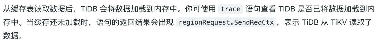- 第 1 次通过 SELECT 读取缓存表数据后,TiDB 未将其缓存至内存中。