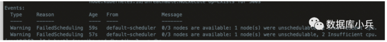 提示有1个节点在维护状态,剩下的节点cpu 不足,此时我们可以调整下tikv 节点需要的资源来满足k8s模拟场景