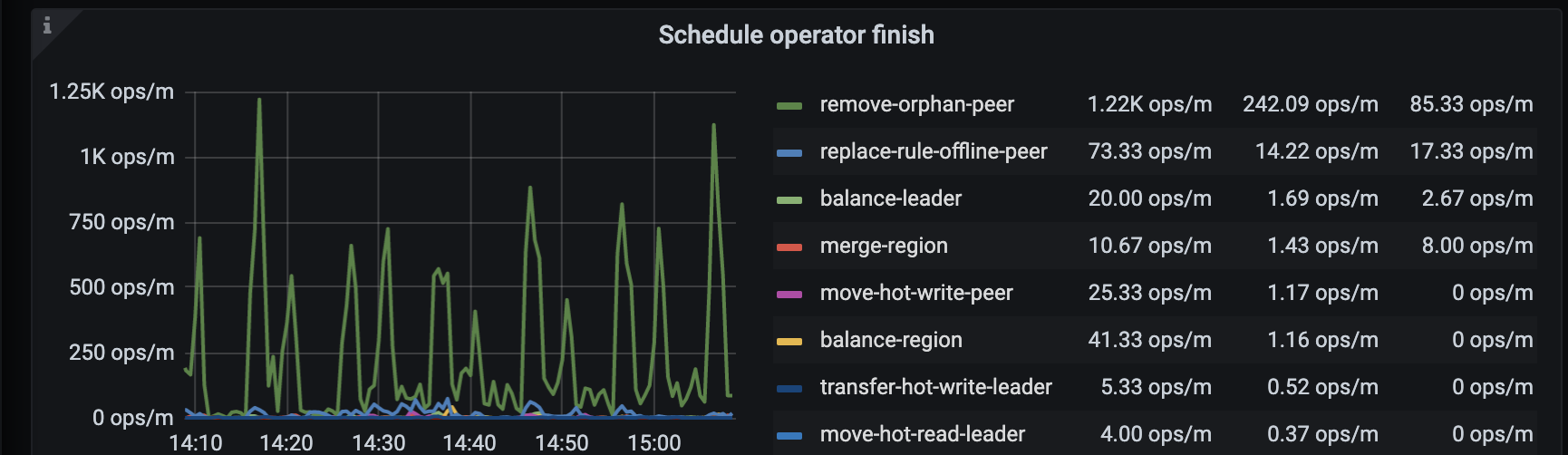在 @jingyu ma 的帮助下 调整了store limit,现在remove-orphan-peer operator的速度比较可观了。但replace-rule-offline-peer 只比之前快了一点,现在仍然很慢。具体表现是个别store 上的region下降特别慢。