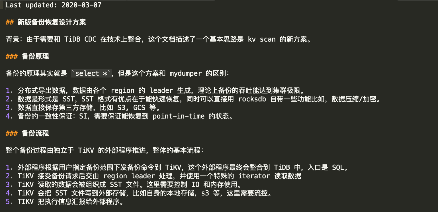 现在的BR备份我看了基本原理之后发现还是一个逻辑备份,而且在恢复的时候还要rewrite key,这个看起来在大数据量的情况下性能不会太好,从以前传统数据库例如Oracle以及mysql来看,逻辑备份性能比物理备份性能要差很多数量级。