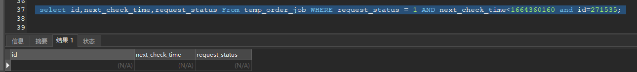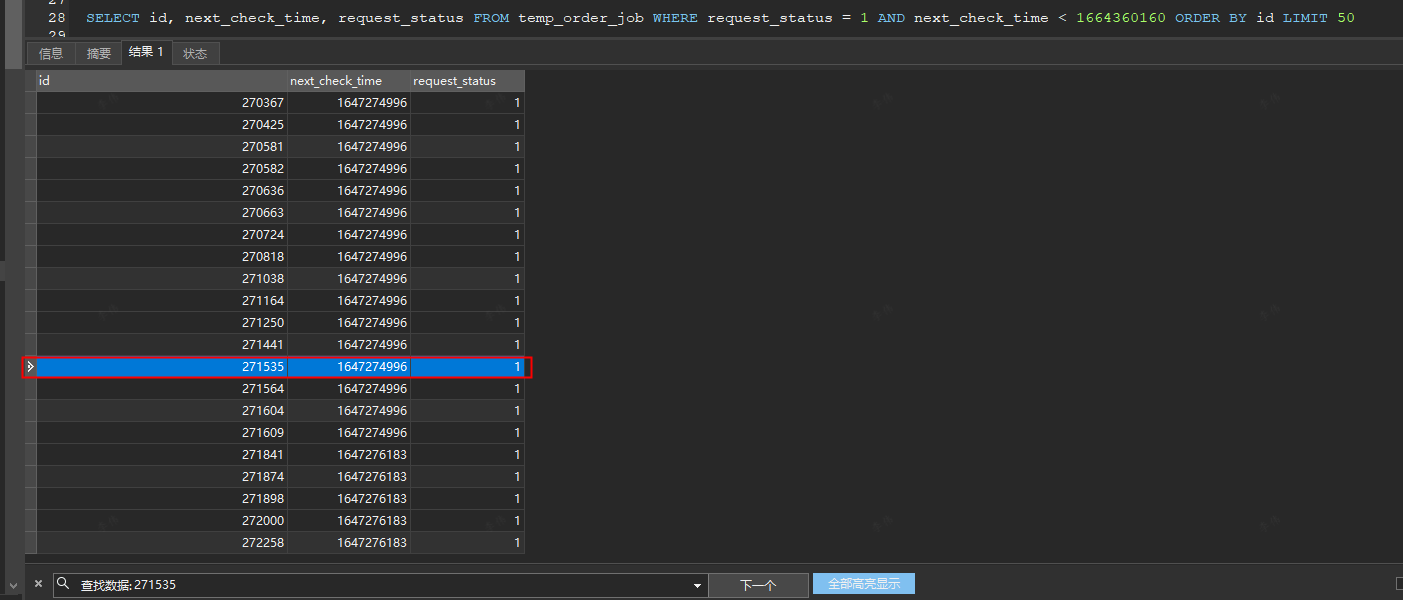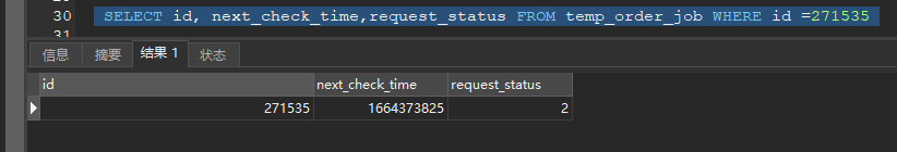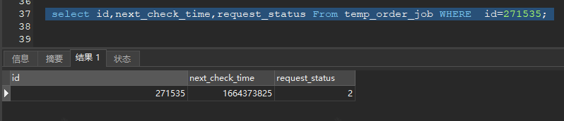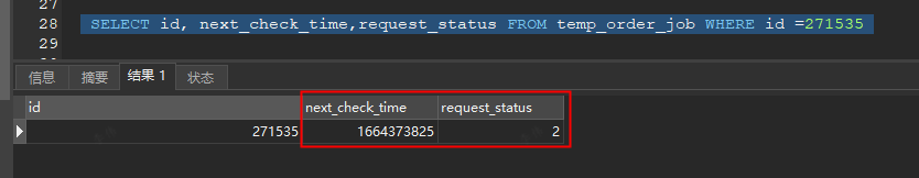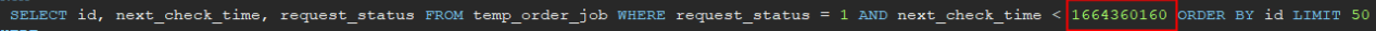 select id,next_check_time,request_status From temp_order_job WHERE request_status = 1 AND next_check_time<1664360160 and id=271535;