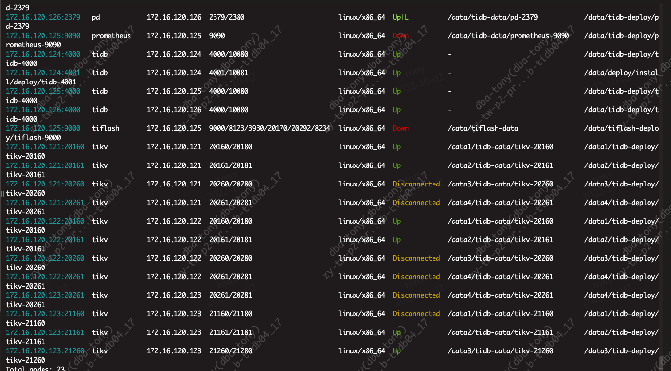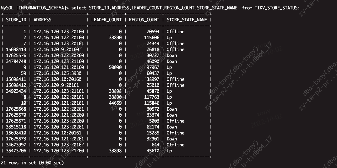 | 1 | 172.16.120.123:20160 | 0 | 20594 | Offline |