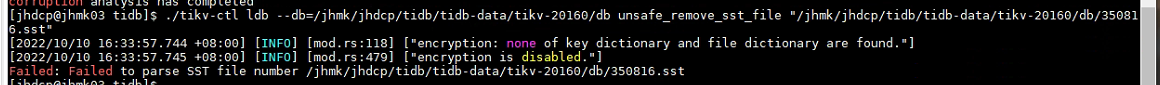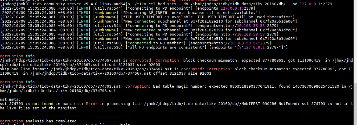 您好,因为没有提示处理办法,所以我尝试移除异常sst文件,但是会显示这个错误,还有其他命令或者方式可以让tikv先启动嘛