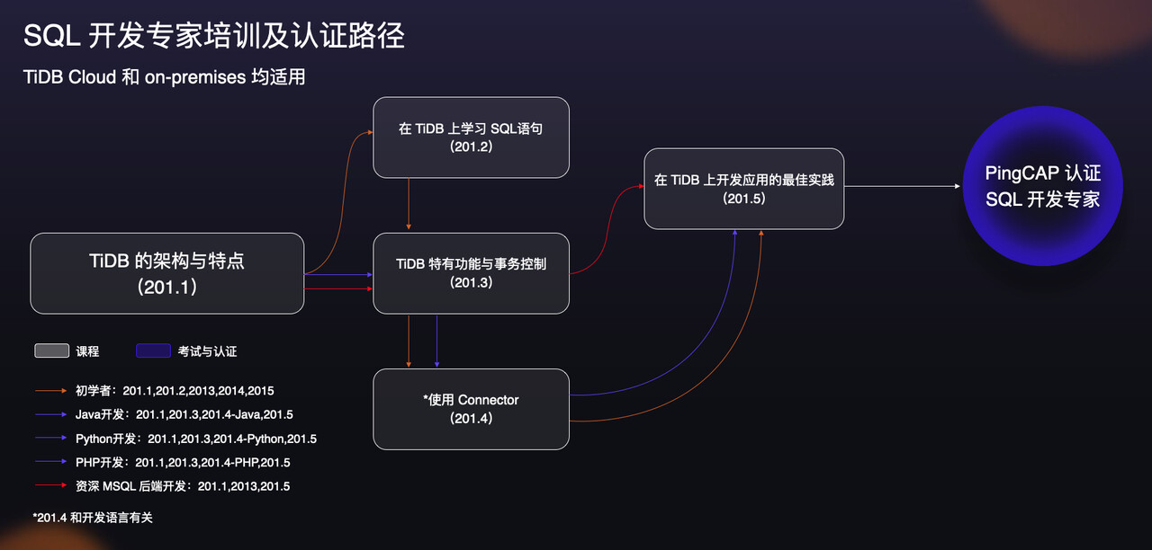 PingCAP 认证 SQL 应用开发专家考试旨在验证应用开发者掌握 TiDB 独特的功能、在 TiDB 上运用最佳实践开发高可用、高弹性的应用的开发能力。