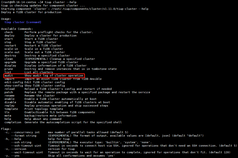 先执行tiup cluster --help 查看我们具体需要哪条命令: