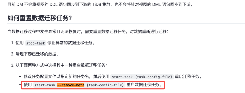 b. 下游数据库中存储的 checkpoint,meta-schema(非实时更新),如果强制移除 checkpoint,remove-meta,任务会重新开始 dump/sync,overwrite (没有清理的)下游数据; 在数据量较小的情况下,是没什么问题的,但是相当于多了前面的步骤,视机器性能、数据量大小不同,可能出现的延迟是不一样的。