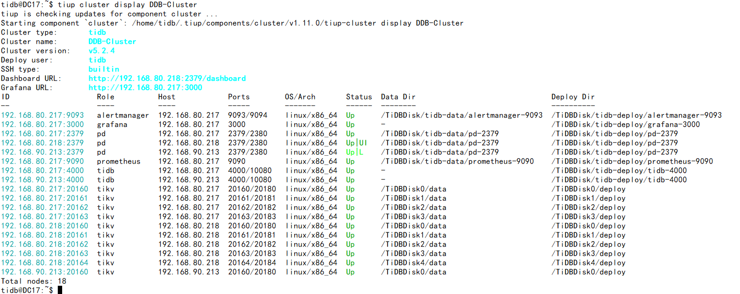TiUP Cluster Display 信息: