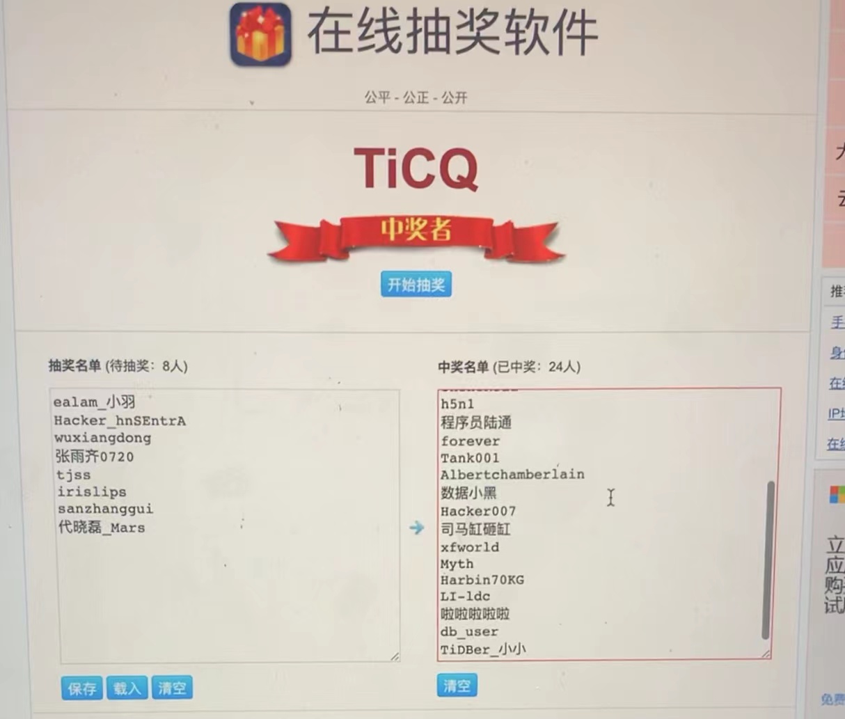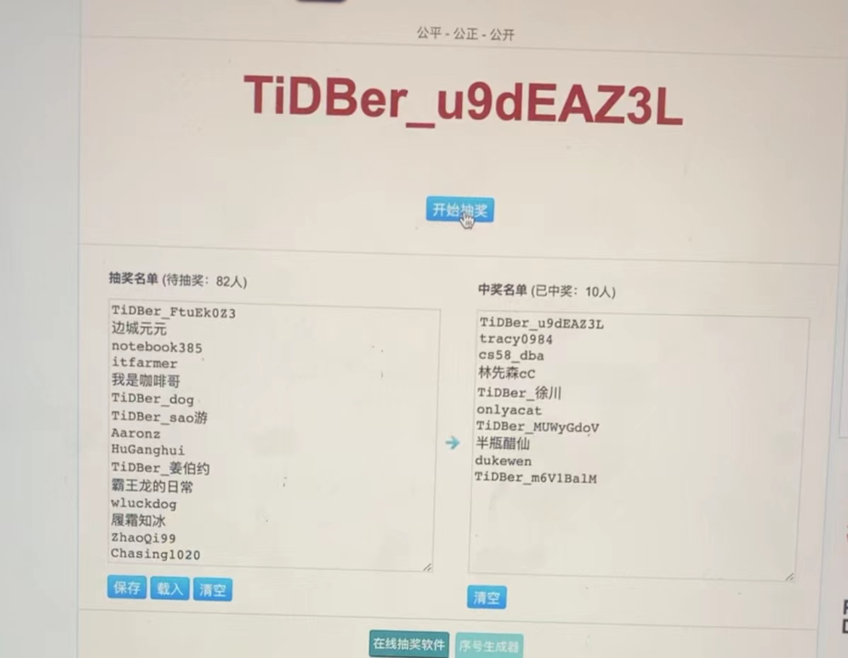 参与 第一弹课程/证书抽奖的 TiDBer 一共有92 人,以下是参与“课程/证书”抽奖的小伙伴列表。