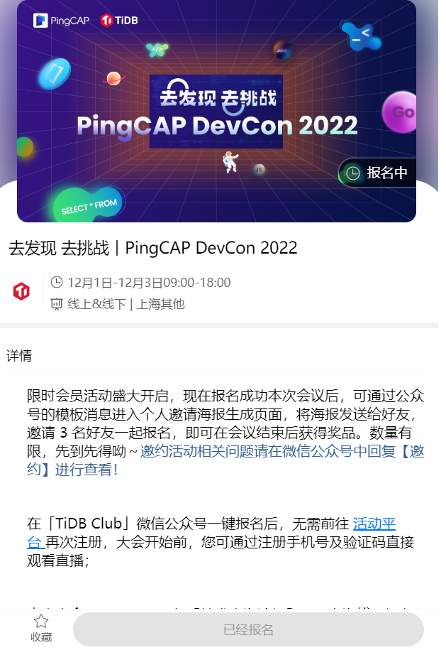 【DevCon 2022 结束报名】 线上线下可参与,报名 +100 积分,更有Ti 飞盘限量款等你拿!