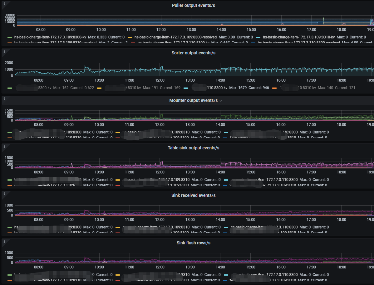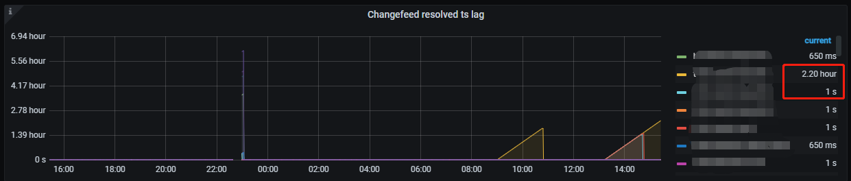 目前 TiCDC 是不是有一些 DDL 操作还在执行,另外内存占用应该会很高。另外如果是 sorter event 比较慢,要关注一下是不是大事务,通过 TiDB log 得 “BIG_TXN” 关键字和 TiDB “Trsaction Write Size Bytes” 的大小情况,再看看 TiCDC的监控 Sink write 监控。