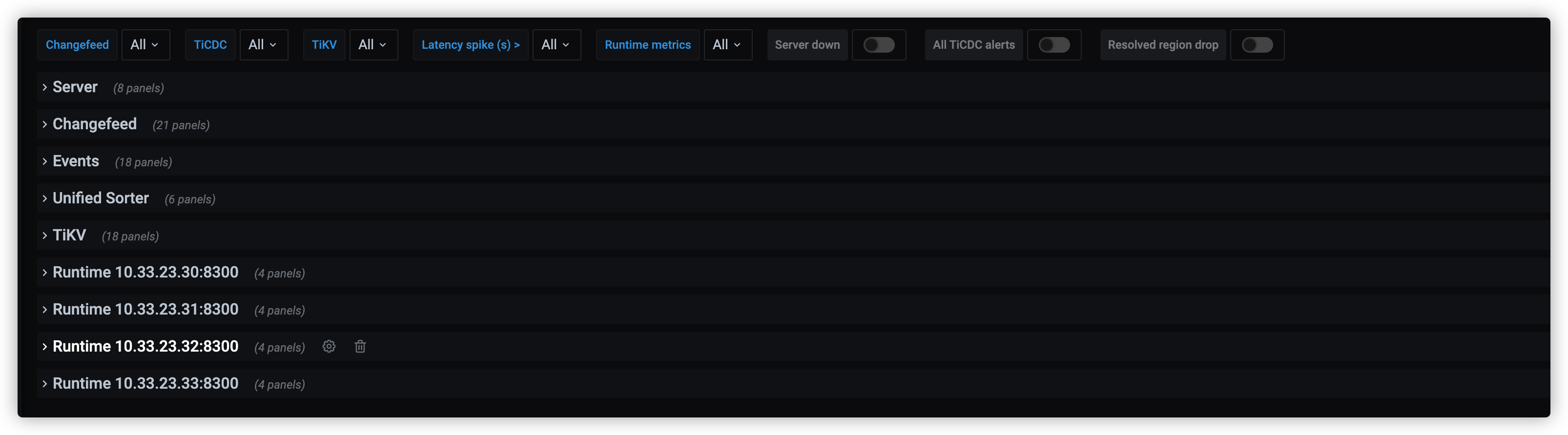 安装成功,tiup display显示up ,且提交changefeed时能正常运行(有刷日志),但grafana面板看不到新扩容的cdc信息。
