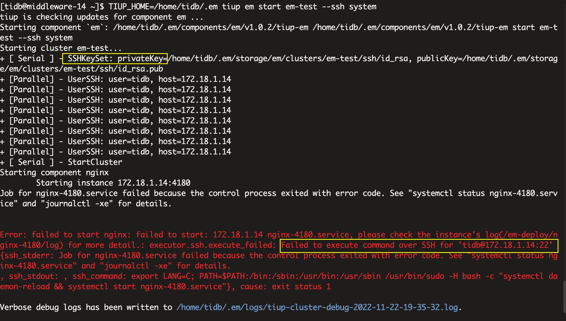 如标题所示,在3台服务器上使用TIUP部署TIDB TIKV PD组成的集群上,TiUniManager启动过程中遇到ssh 不通的问题