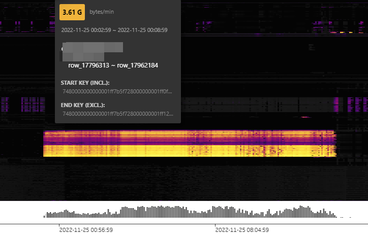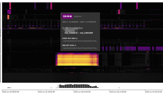 - 从tidb dashboard热力图中发现23号00点开始xxx_23 xxx_25表读取量飙升,其它时间点没有异常现象