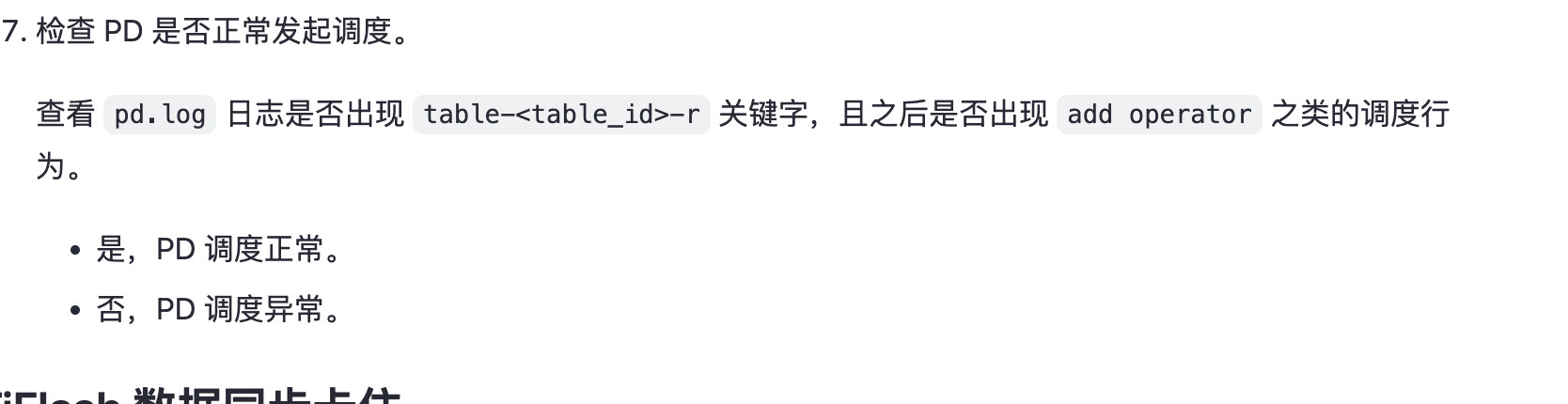 - 确认同步进度 “慢” 的具体表现。出问题的表,其 flash_region_count 是否很长时间”没有变化”,还是只是”变化得慢” (比如几分钟还是会涨几个 region)。