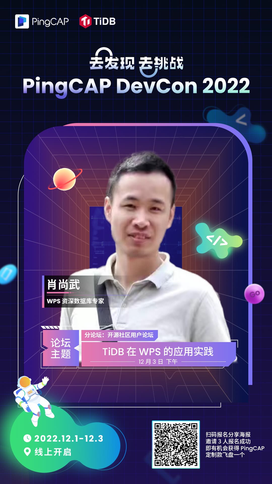 随着 TiDB 快速迭代,稳定性不断提升,WPS 使用 TiDB 的场景也越来越多;在业务快速发展,数据量线性增长,原业务的 MySQL 库遇到单机容量或性能瓶颈, 又不想分库分表、使用数据库中间件对业务有约束的 Sharding,TIDB 是一个非常好的选择;后续我们会在如何更好的使用 TIDB 在 WPS 给业务赋能,支撑业务的海量数据稳定运行中持续发力。