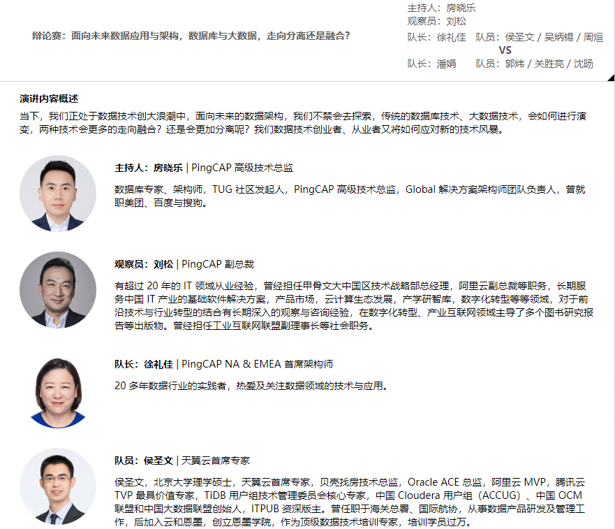 辩论赛主题 :面向未来数据应用与架构,数据库与大数据,走向分离还是融合?