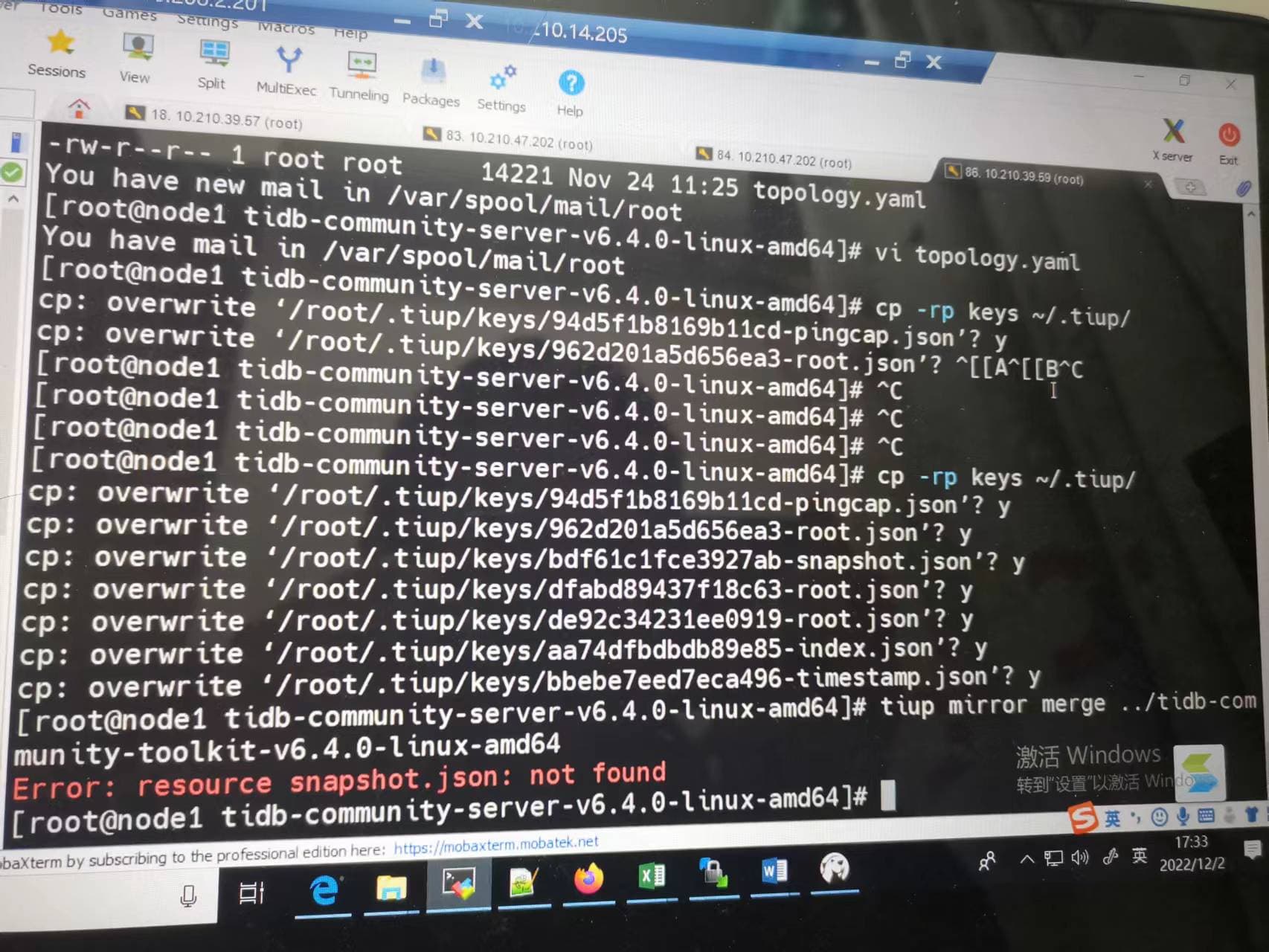 安装成功tiup后,在server目录下成功执行了cp -rp keys ~/.tiup/后,在server下执行tiup mirror merge …/tidb-community-toolkit-v6.4.0-linux-amd64/ 报错。备注:server和toolket在同一目录下。